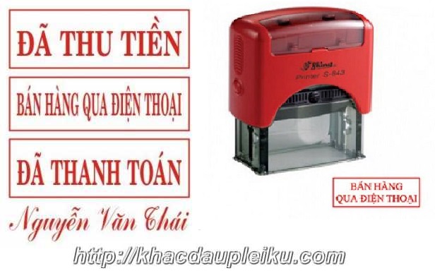 Khắc dấu bán hàng qua điện thoại thường sử dụng mực dấu màu đỏ (Quý khách hàng có thể thay màu mực xanh / đen theo yêu cầu đều được). Và mặt con dấu loại này được khắc bằng công nghệ khắc dấu laser tại xưởng Vietlink; sử dụng cán dấu kích thước 14mm x 37mm (như cán dấu trodat 4911 hoặc cán dấu shiny S852) hoặc theo yêu cầu từ Quý khách hàng.